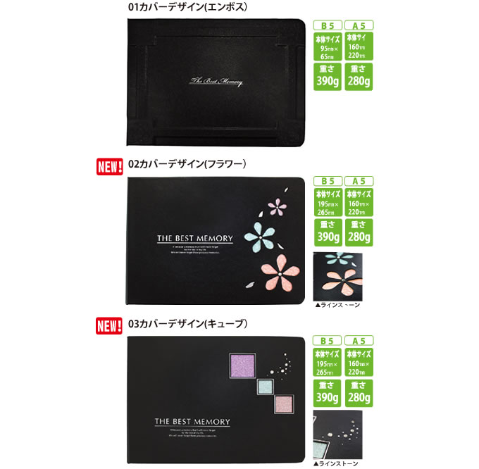カバーデザインは3タイプ。A5サイズとB5サイズの2種類があります。